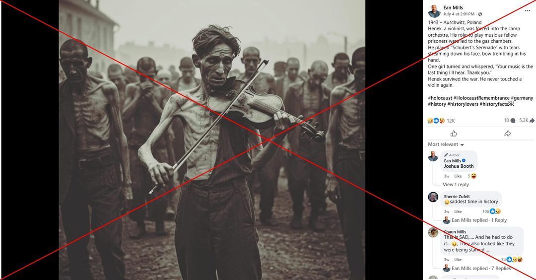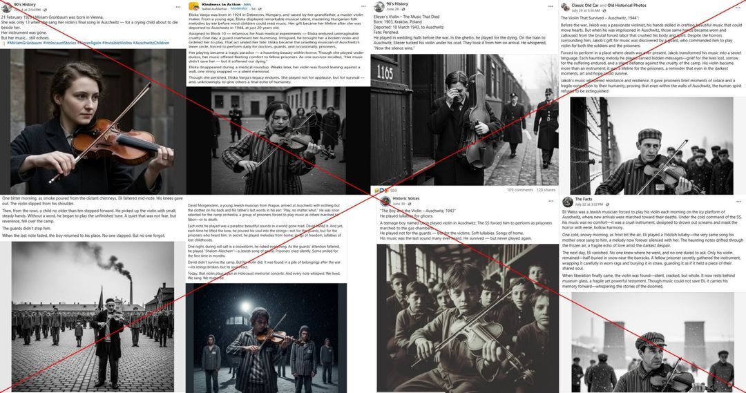 The Auschwitz-Birkenau museum in Poland recently sounded the alarm over a growing online trend of social media posts sharing AI-generated images of alleged Holocaust victims. In July 2025, pictures of a violinist playing in concentration camps spread across the internet, posted alongside a fabricated story. While musicians did play a part in life inside the Nazi-run camps, the image does not depict a real person, and visual inconsistencies point to the content likely being AI-generated.